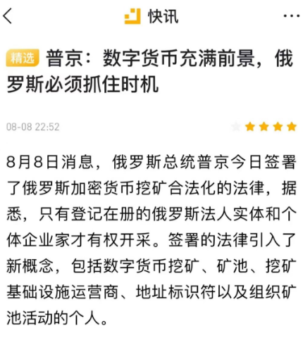 普京正式敲定!俄罗斯加密挖矿合法化!比特币大涨重回6万美元